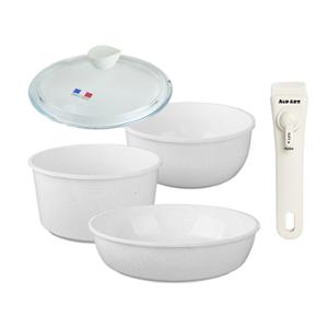 (백화점판매상품) [알루아트] 매직그립 테라조 5P세트_인덕션겸용 (냄비18+웍20+팬26+유리뚜껑18+멀티핸들) TE5P-26