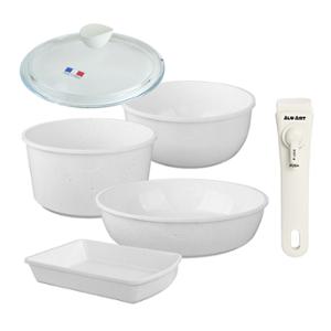 (백화점판매상품) [알루아트] 매직그립 테라조 6P세트_인덕션겸용 (냄비18+웍20+팬26+계란말이팬+유리뚜껑18+멀티핸들) TE6P-26
