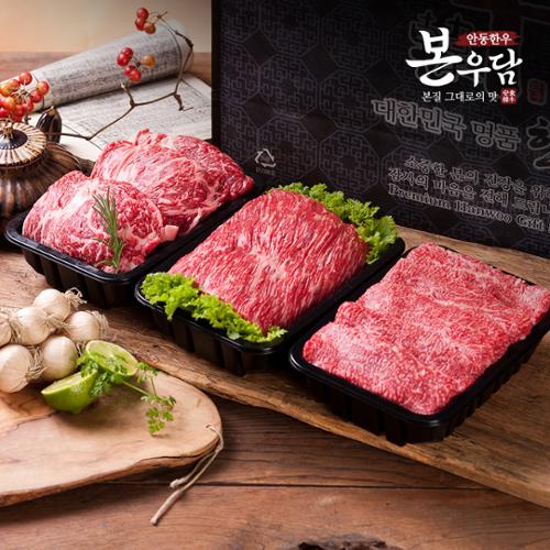 [안동한우 본우담] 1+등급이상 한우 구이정육 실속세트 2호 1.2kg (등심400g + 국거리400g + 불고기400g) M