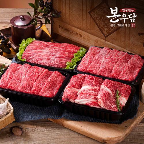 [안동한우 본우담] 1+등급이상 한우 구이정육 실속세트 5호 1.6kg (등심400g+국거리400g+불고기400g+불고기400g) M