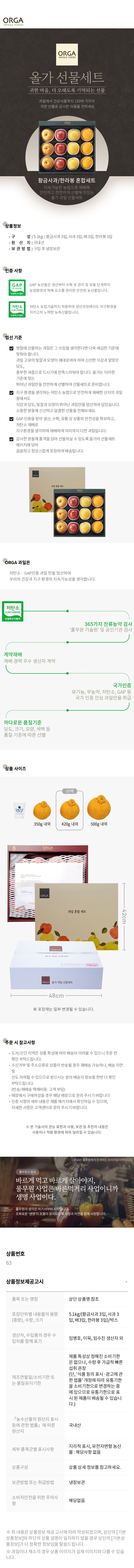 (백화점판매상품) [ORGA] 황금사과/배/한라봉 혼합세트_M