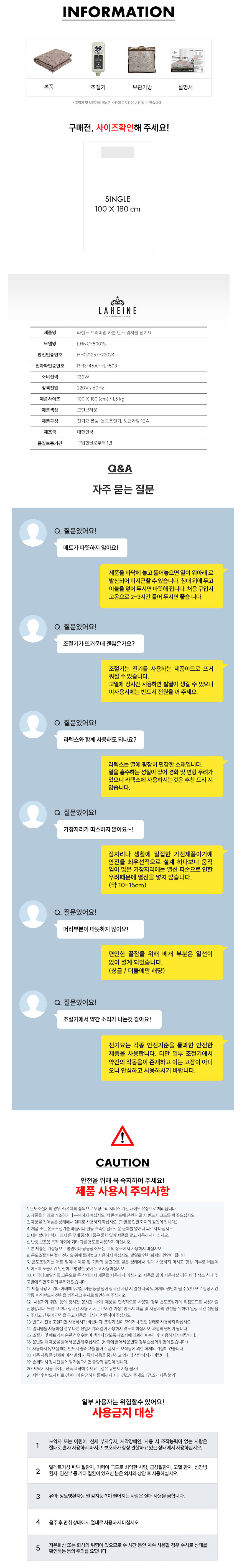 [라헨느] 3세대 프리미엄 모던브라운 탄소열선 카본매트 워셔블 양면 전기요 싱글