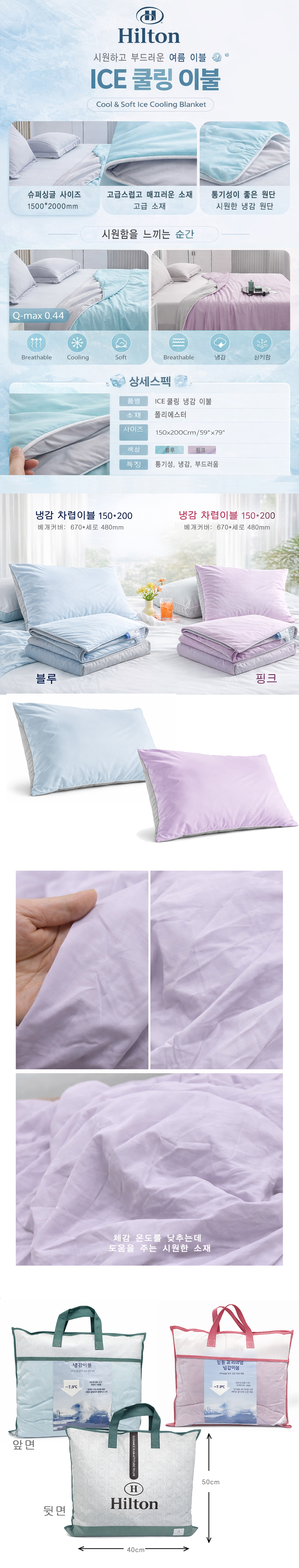 [힐튼] 여름용 냉감이블+베개 커버 세트(1500*2000mm)_색상 택1
